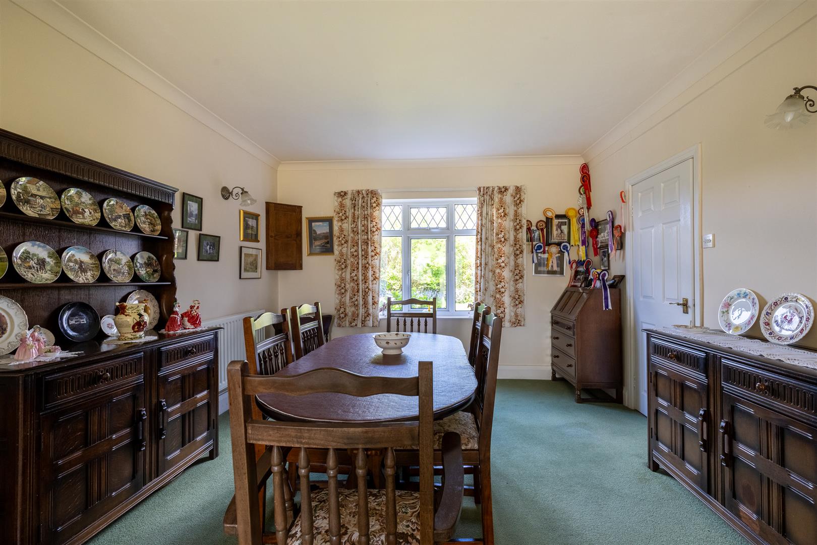 Entrance Porch, Entrance Hall, Living Room/Dining Room, Conservatory, Sitting Room, Kitchen/Breakfast Room, Utility Room, Shower Room, Side Porch, Landing, Three Double Bedrooms, Childs Bedroom No. 4, Two Bathrooms, Oil Central Heating, uPVC Double Glazed Windows, Car Parking Space, Gardens, Two Post and Rail Paddocks, Timber Range comprising Two Loose Boxes. In all about .55 of an acre.