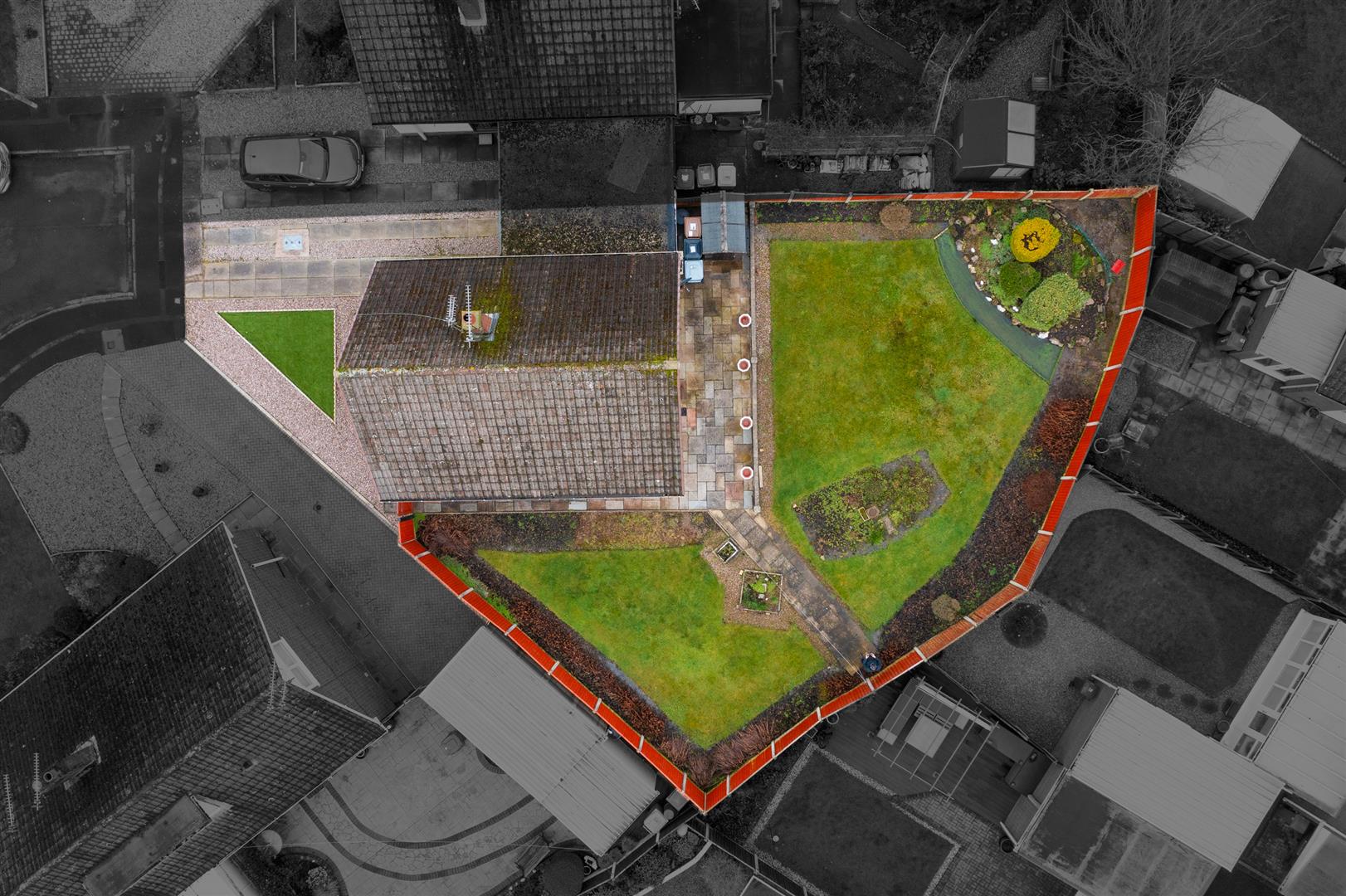 Head of the cul-de-sac, large corner garden plot able to benefit from a southerly aspect at the rear, front stone and paved driveway providing off-road parking, artificial grass area. Link detached garage (single - 16’3” x 8’0”) - with up-and-over door and uPVC double glazed rear door and window, rear garden via side entrance gate, paved patio and pathways providing natural lawn sections in addition to a water feature, rockery and various stocked borders, cold water tap.