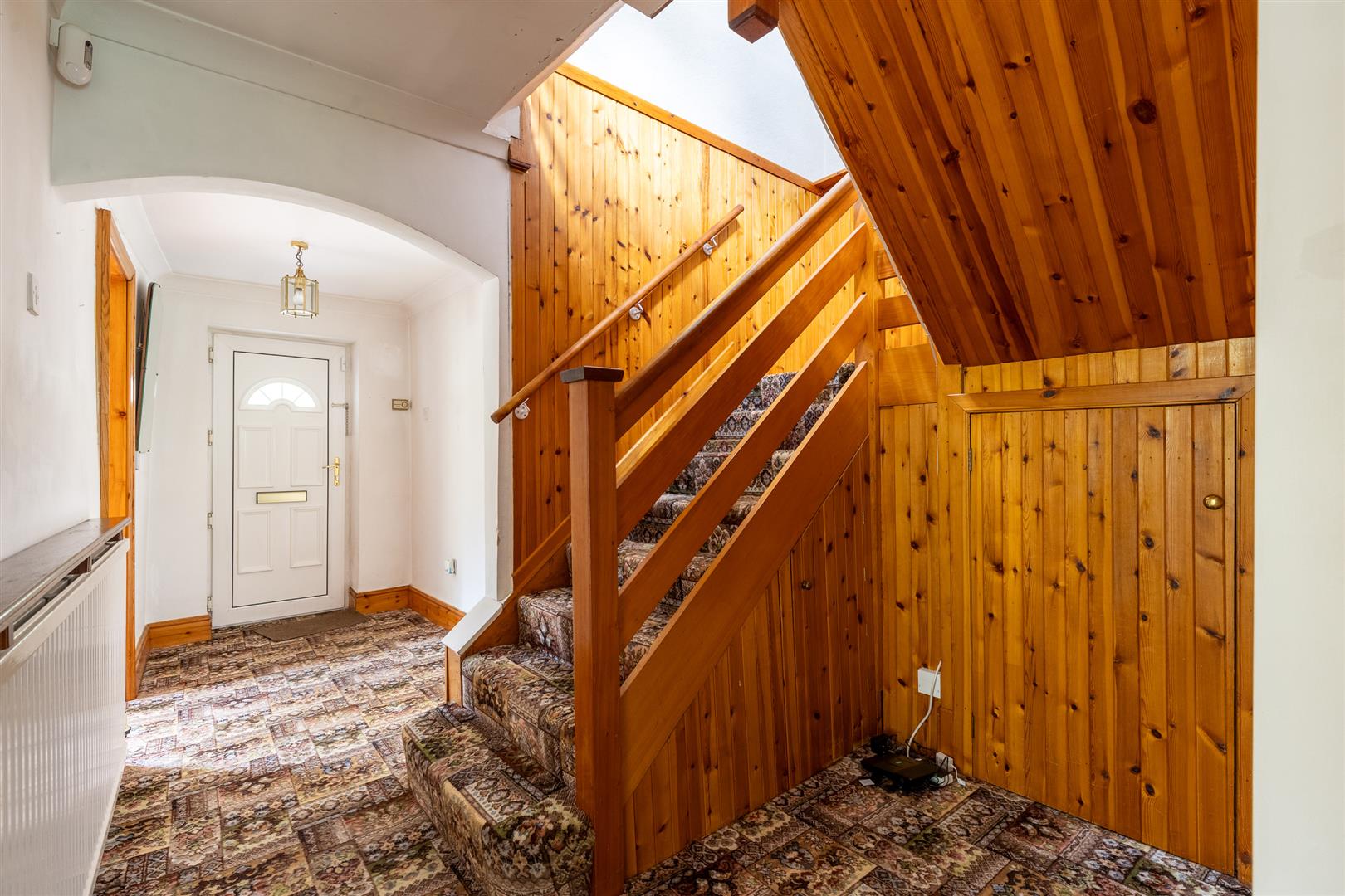 Dimensions: 5.44m x 2.36m (17'10" x 7'9"). Understairs store, single wall light, uPVC entrance door, radiator.