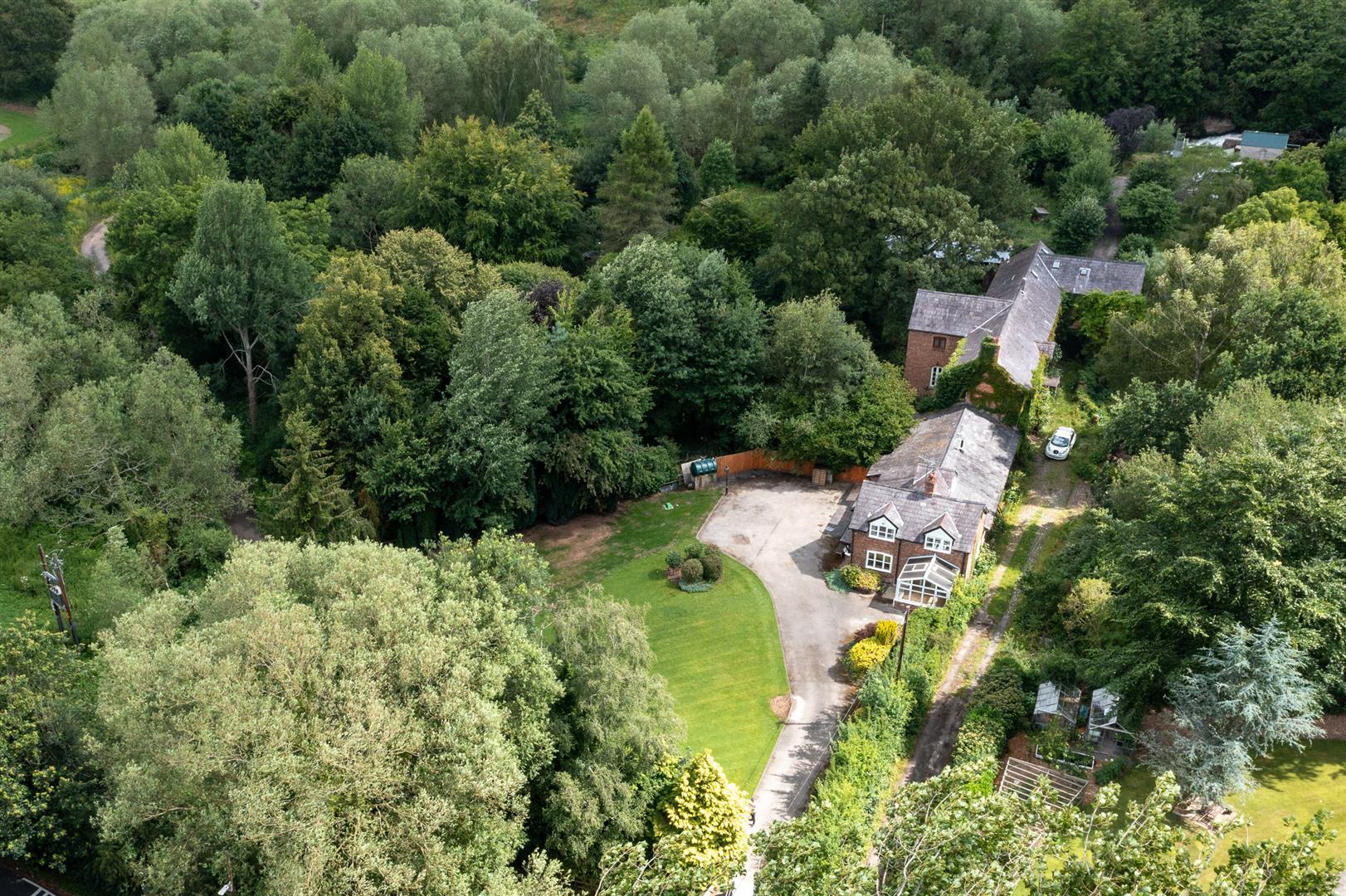 The gardens are extensively lawned with shrubs, specimen trees and enjoy a South Westerly woodland aspect.