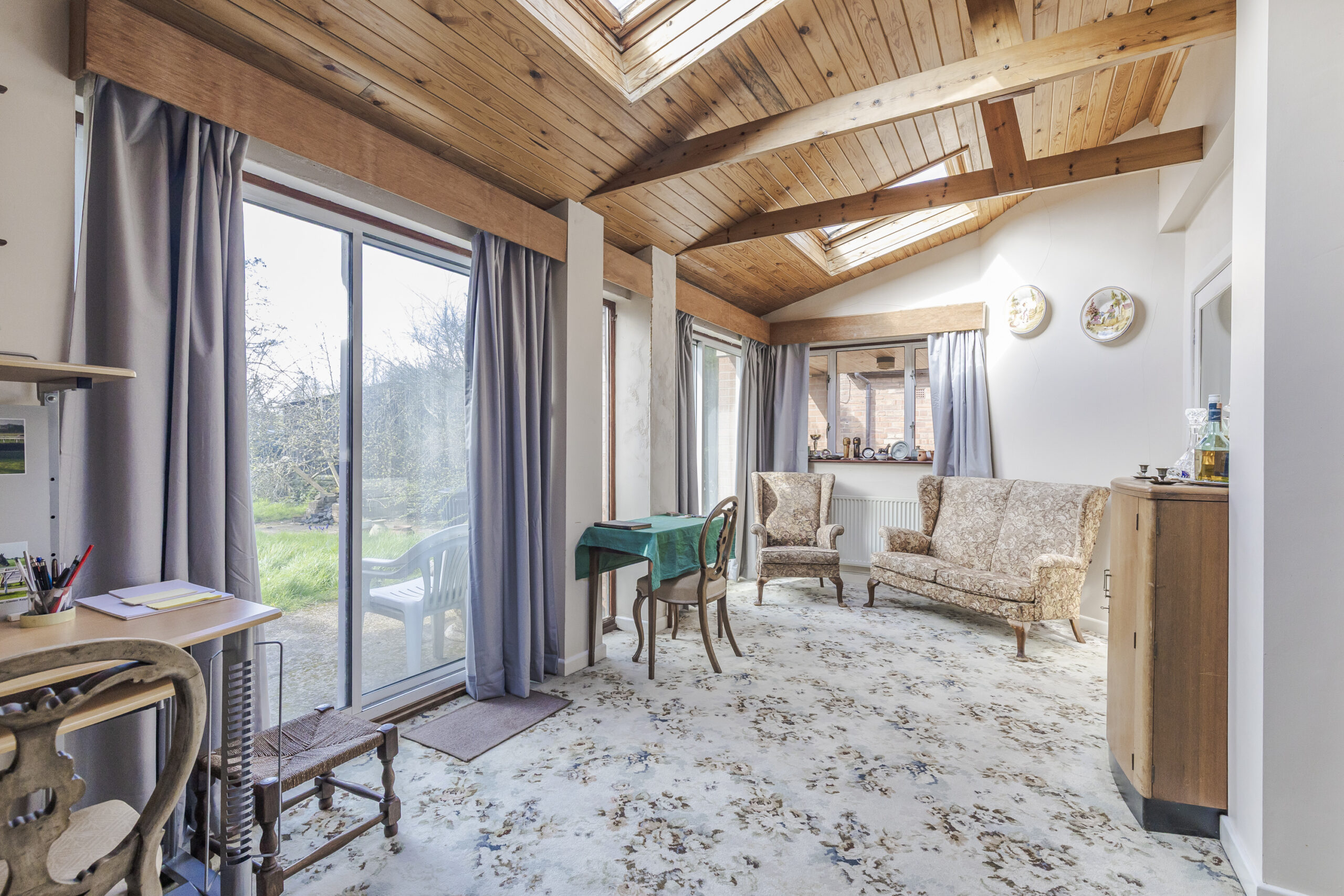 Two pairs of double glazed sliding patio windows to rear garden, two double glazed windows, Velux windows.