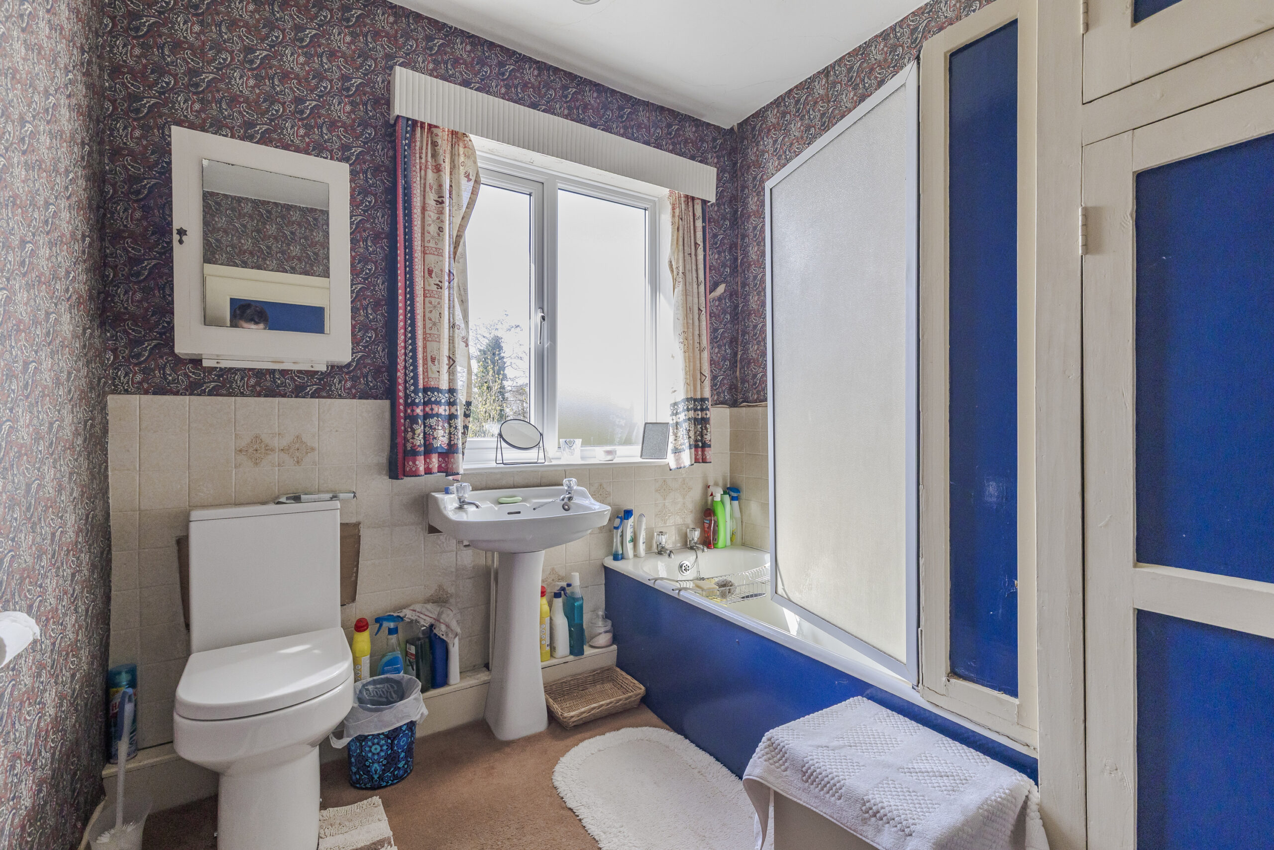 Cast bath with Triton shower over, pedestal hand basin and low flush W/C.