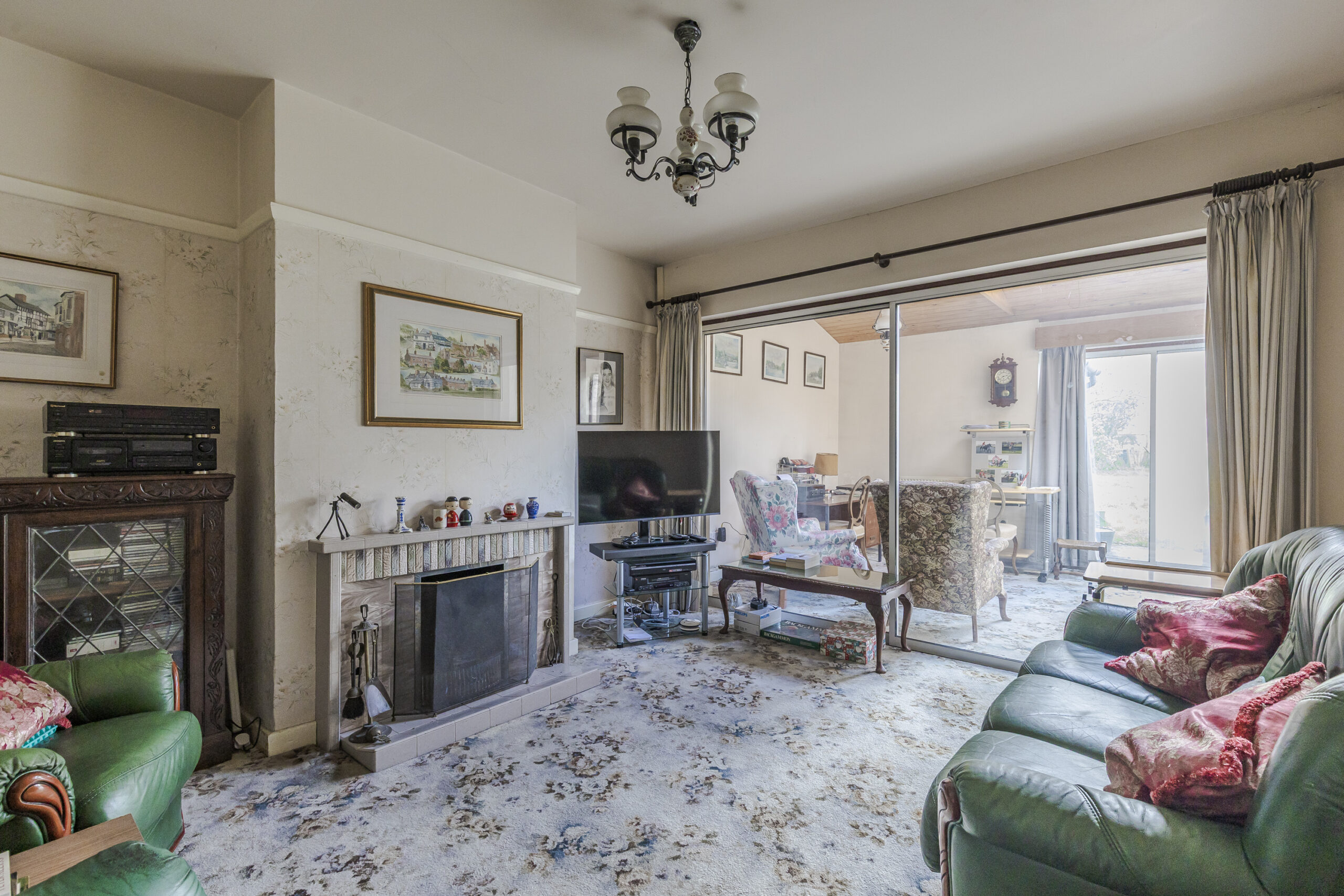 Tiled fireplace, sliding double glazed patio windows to garden room.