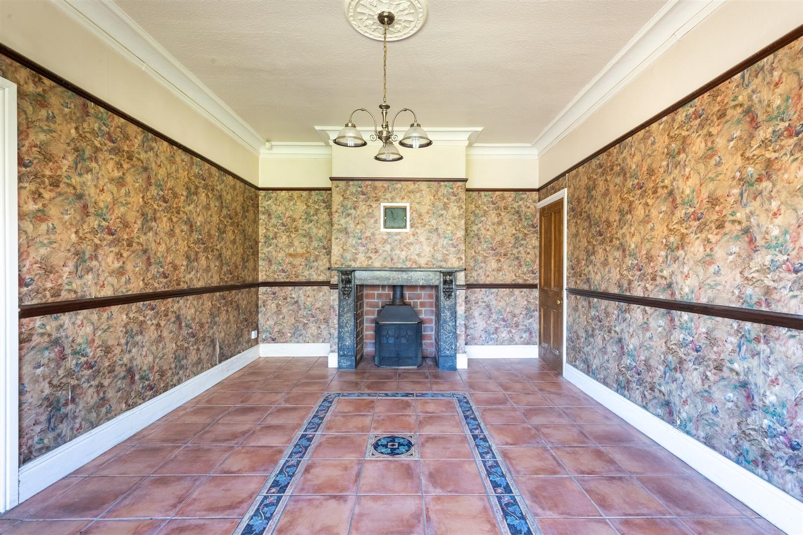 Dimensions: 5.44m into bay x 3.61m (17'10" into bay x 11'10" . Open fireplace with marbleised surround and multi fuel stove, dado rail, understairs store, radiator.