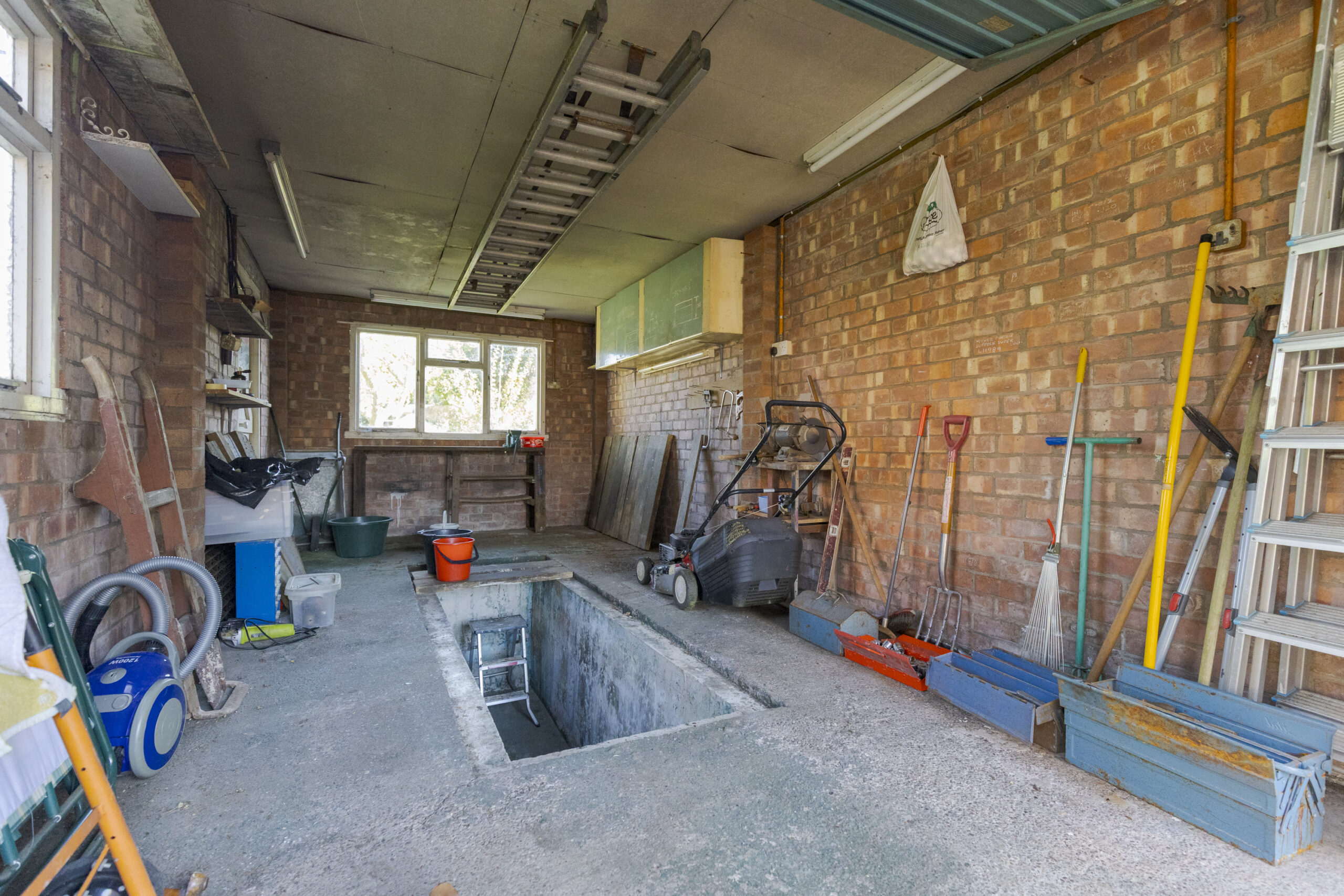 Outside, the property includes a brick garage with an inspection pit, along with plenty of parking space and the 105 foot South facing rear garden.