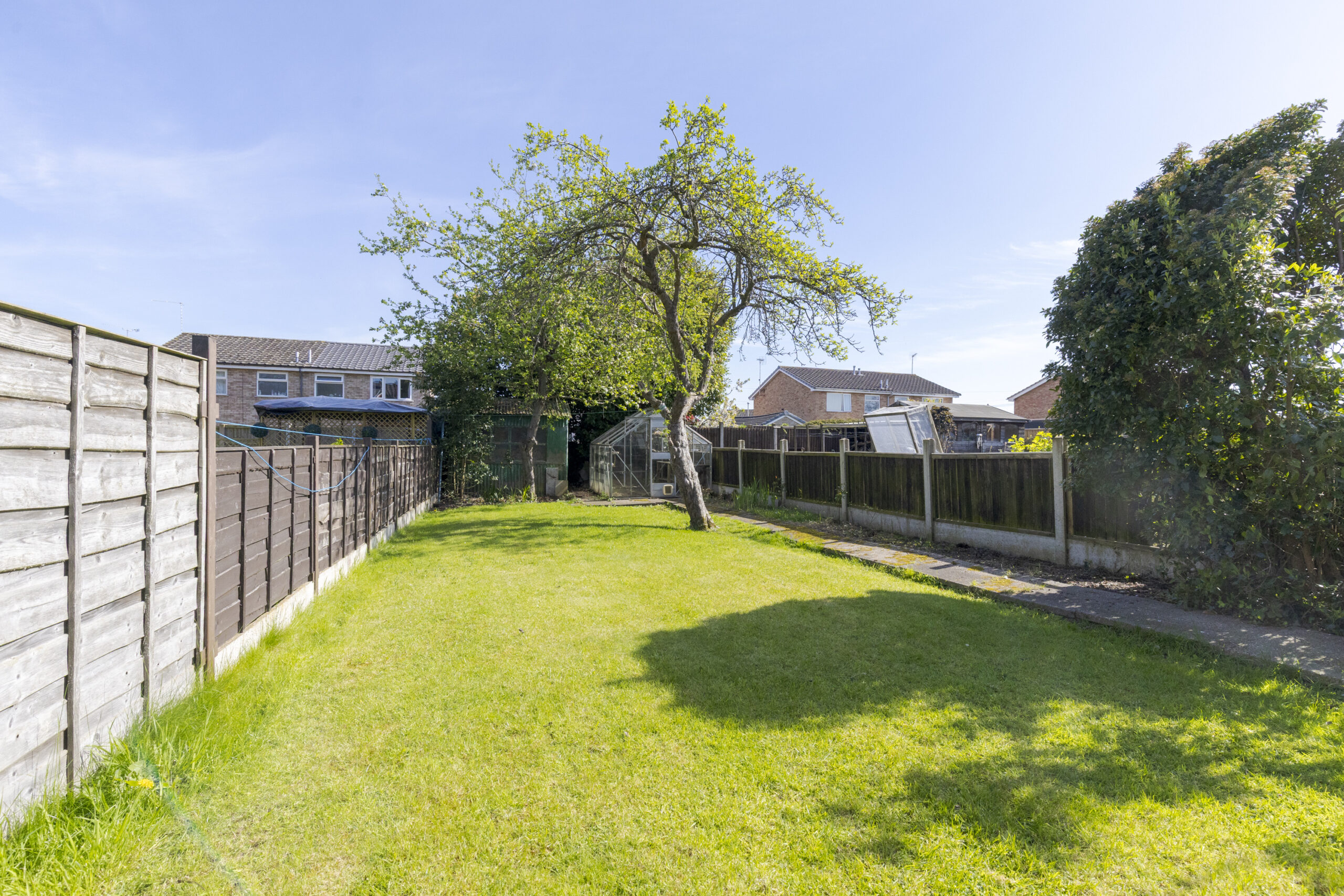 The gardens extend to the front and rear of the house. The garden is extensively lawned with block paved patio and apple tree.