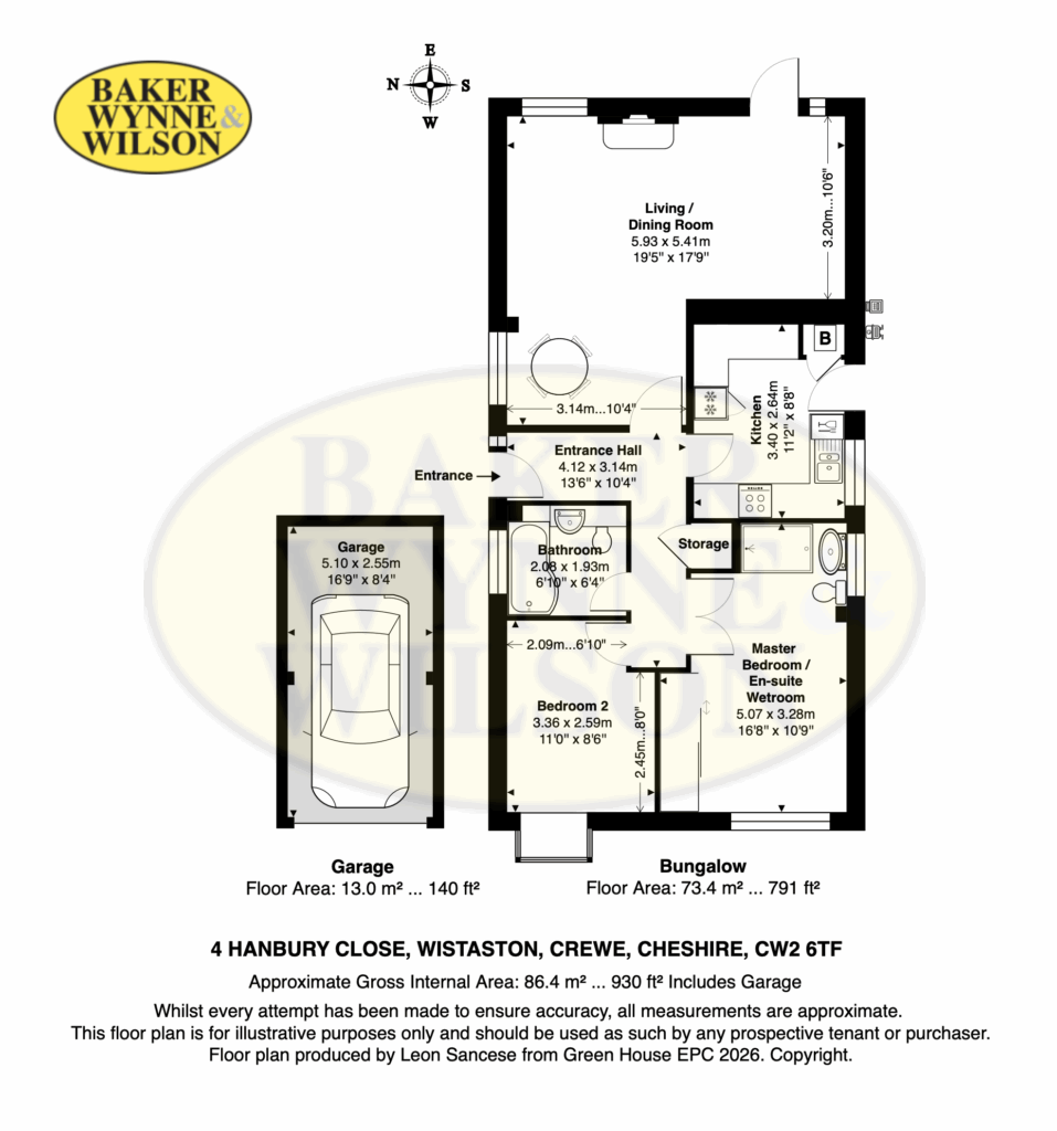 The bungalow occupies a particularly pleasant position in a well established locality, off Laidon Avenue. It is ideally located about 3.5 miles from the historic market town of Nantwich, 2.5 miles from Crewe railway station (London Euston 90 minutes and Manchester 40 minutes). Junction 16 of the M6 motorway is 8 miles, making the property convenient to many areas including the North West, The Potteries and the Midlands. Manchester International Airport is about a 45 minute drive. There is a post office, Spar, Nursery, Veterinary practice and a doctors surgery about 1.5 miles distance in Wells Green.