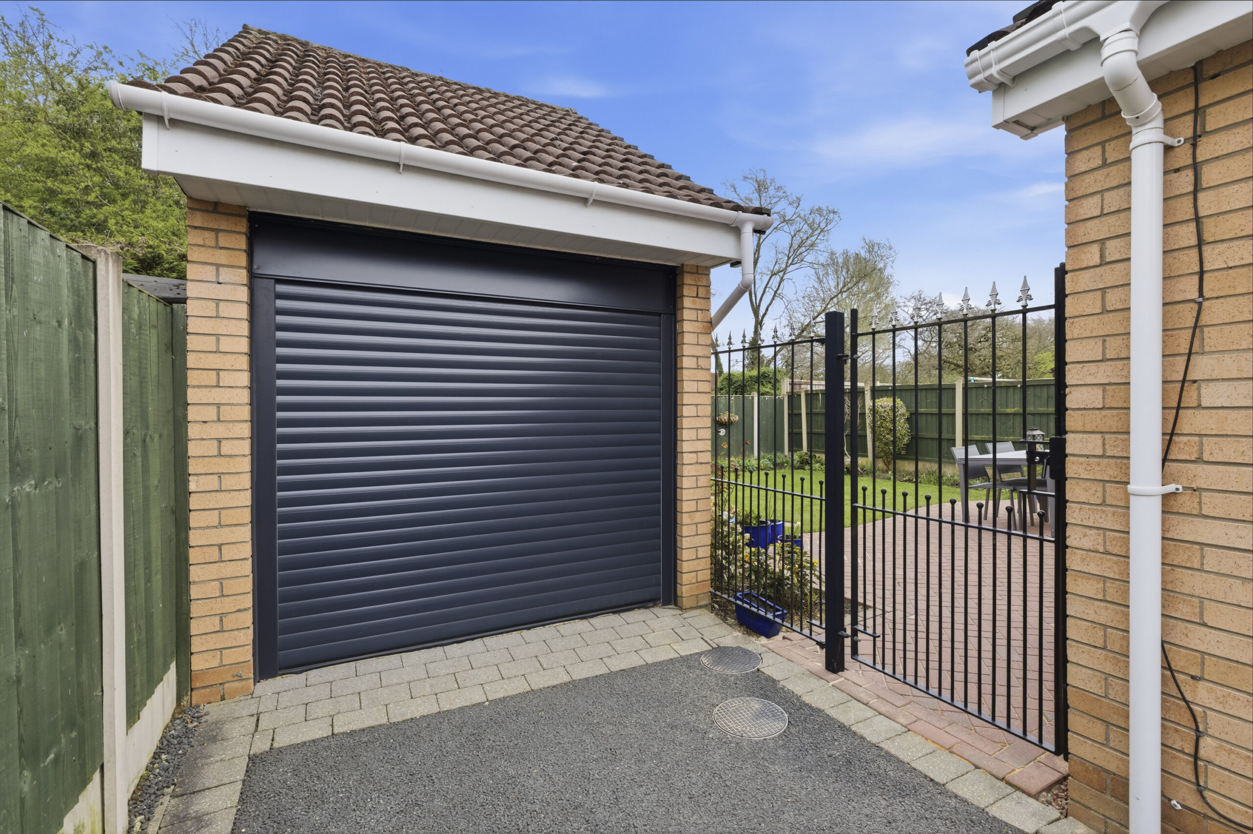 Brick built tiled roof detached GARAGE 16'6" x 8'4". Electrically operated up and over door. Car parking space. Exterior lights.