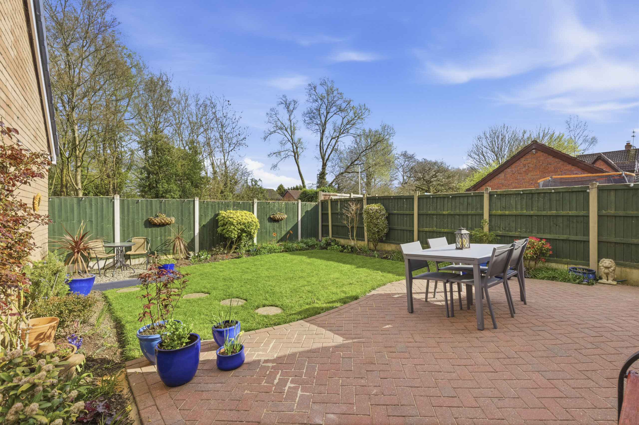 The front garden is lawned. The rear garden enjoys a South Eastly aspect and is lawned with borders, a large block paved patio and a gravel seating area. The rear garden enjoys an attractive woodland backdrop.