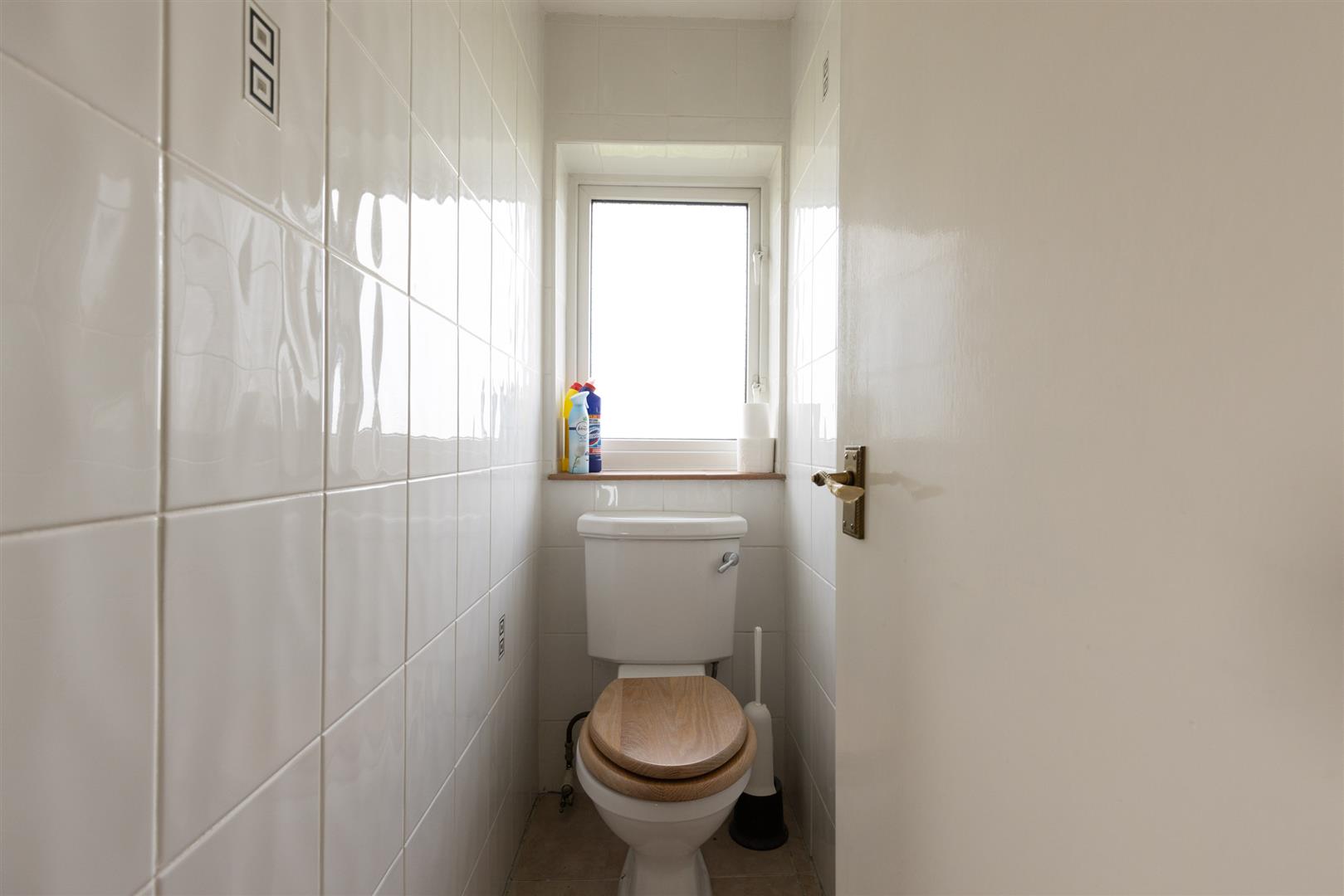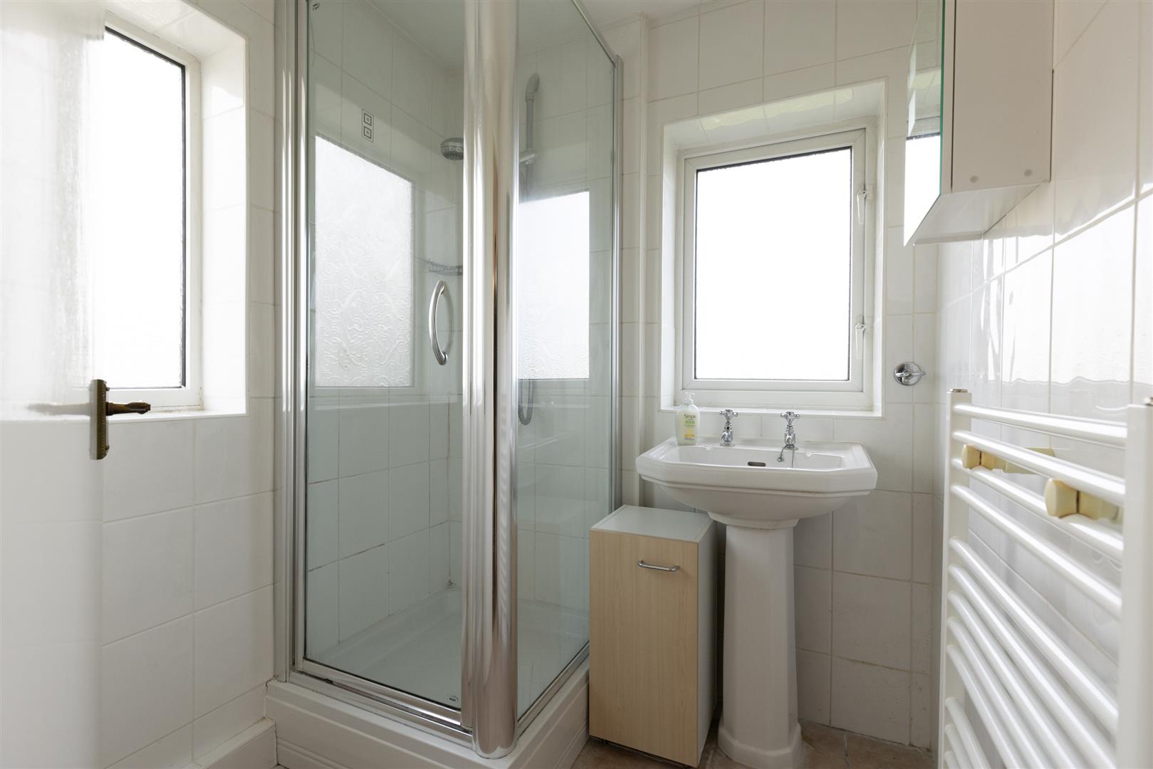 With shower cubicle, pedestal wash basin, fully tiled walls, heated towel rail, two double glazed windows.