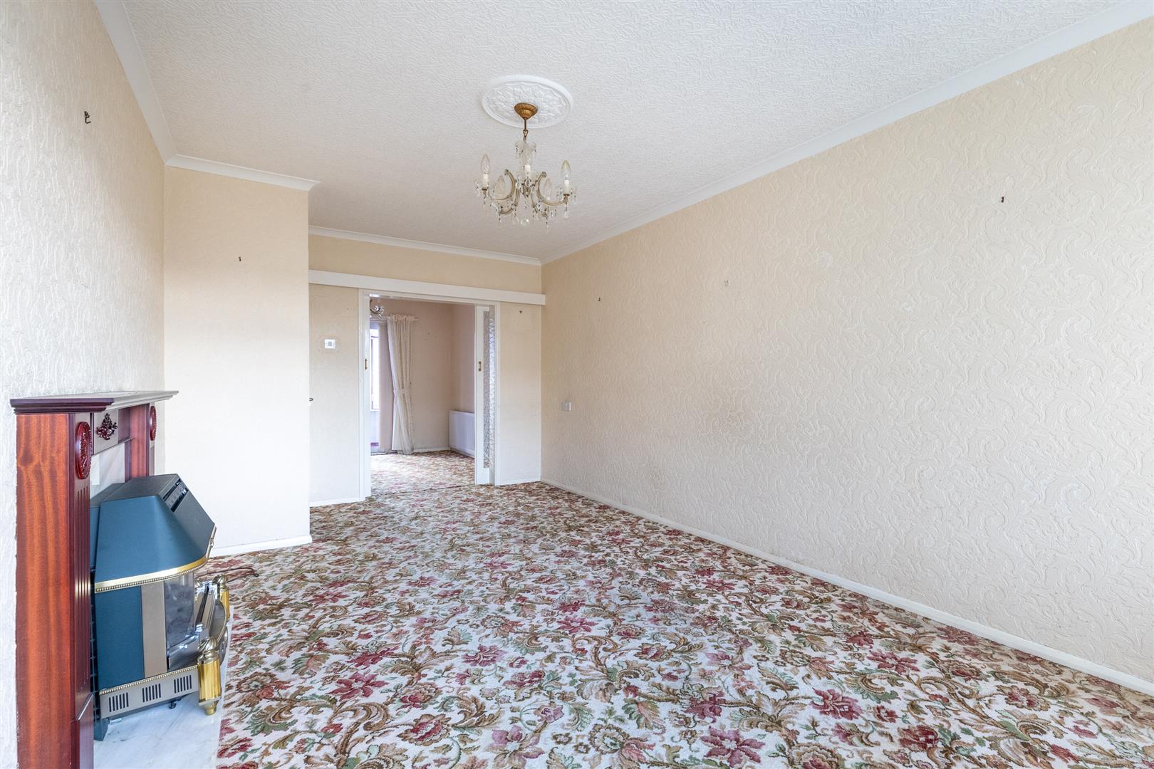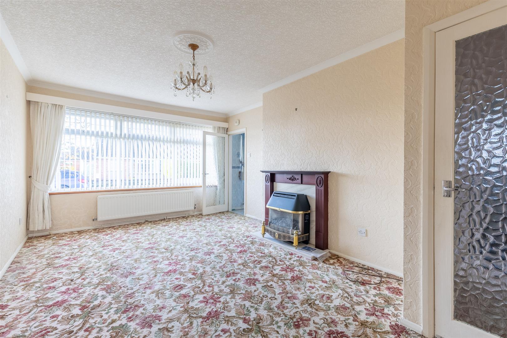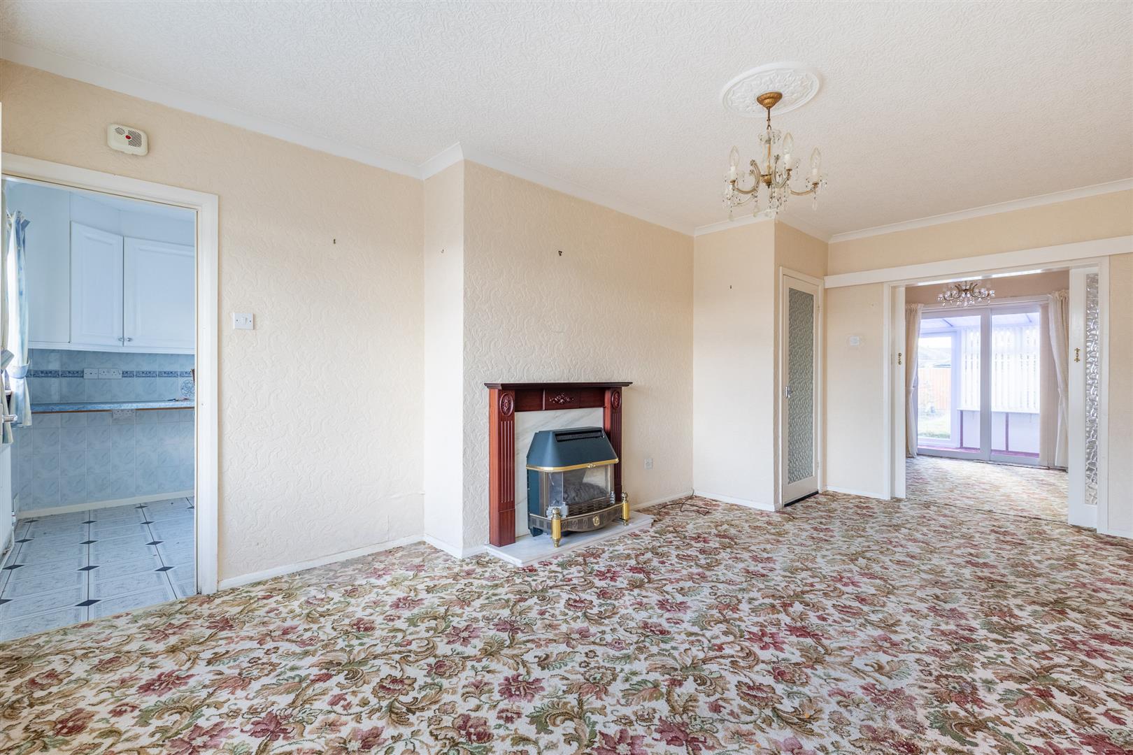 Dimensions: 3.63m x 5.61m maximum (11'11" x 18'5" maximum). Adam style fireplace with composite back and hearth (Baxi Bermuda gas fire with back boiler), radiator, uPVC double glazed window