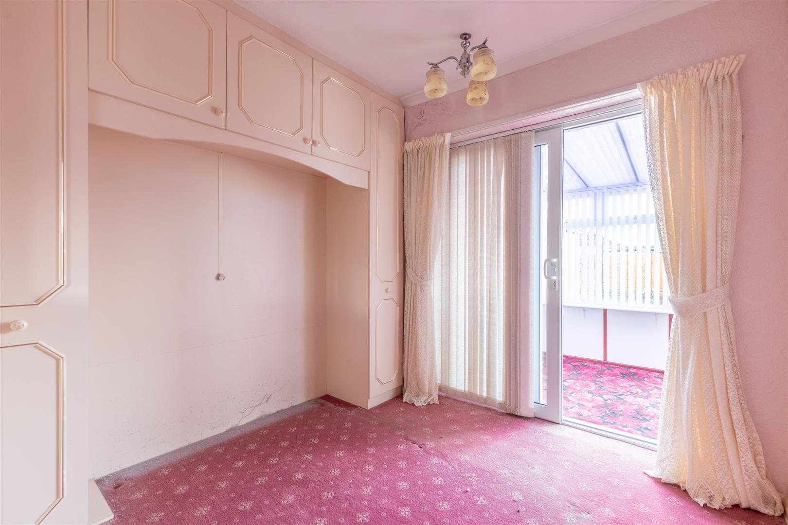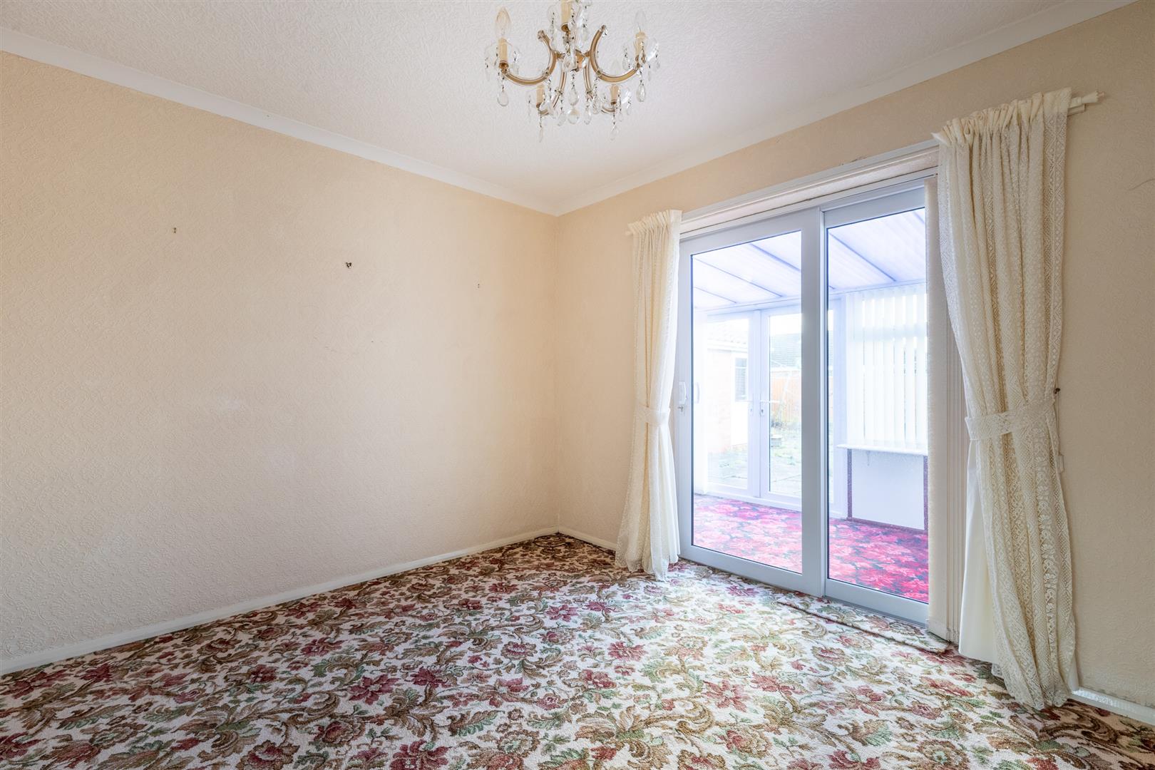 Dimensions: 3.02m x 2.72m (9'11" x 8'11"). Range of fitted wardrobes, radiator, sliding uPVC double glazed doors to conservatory