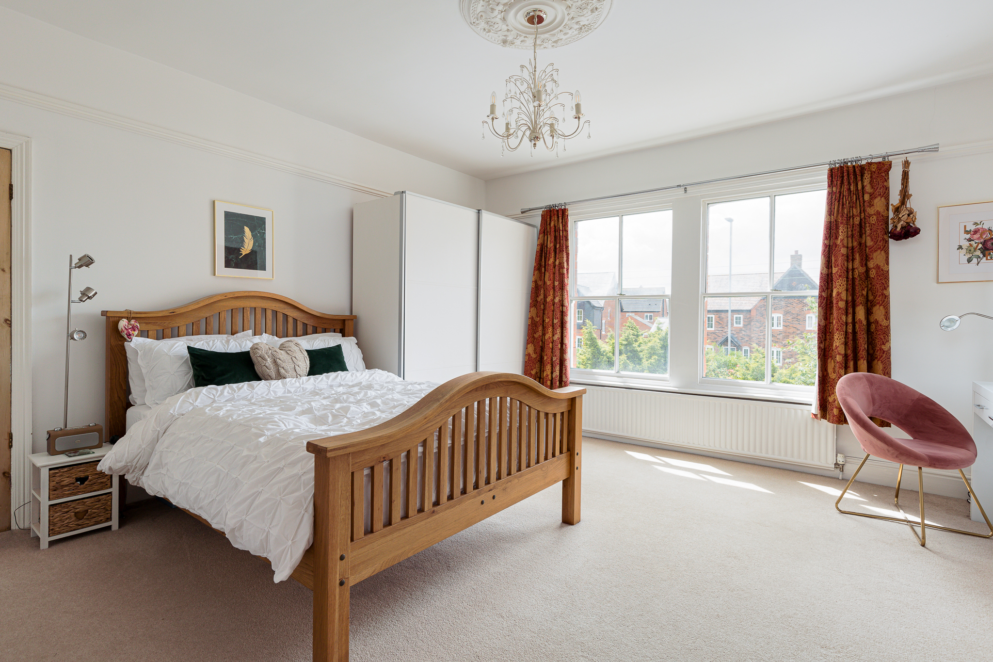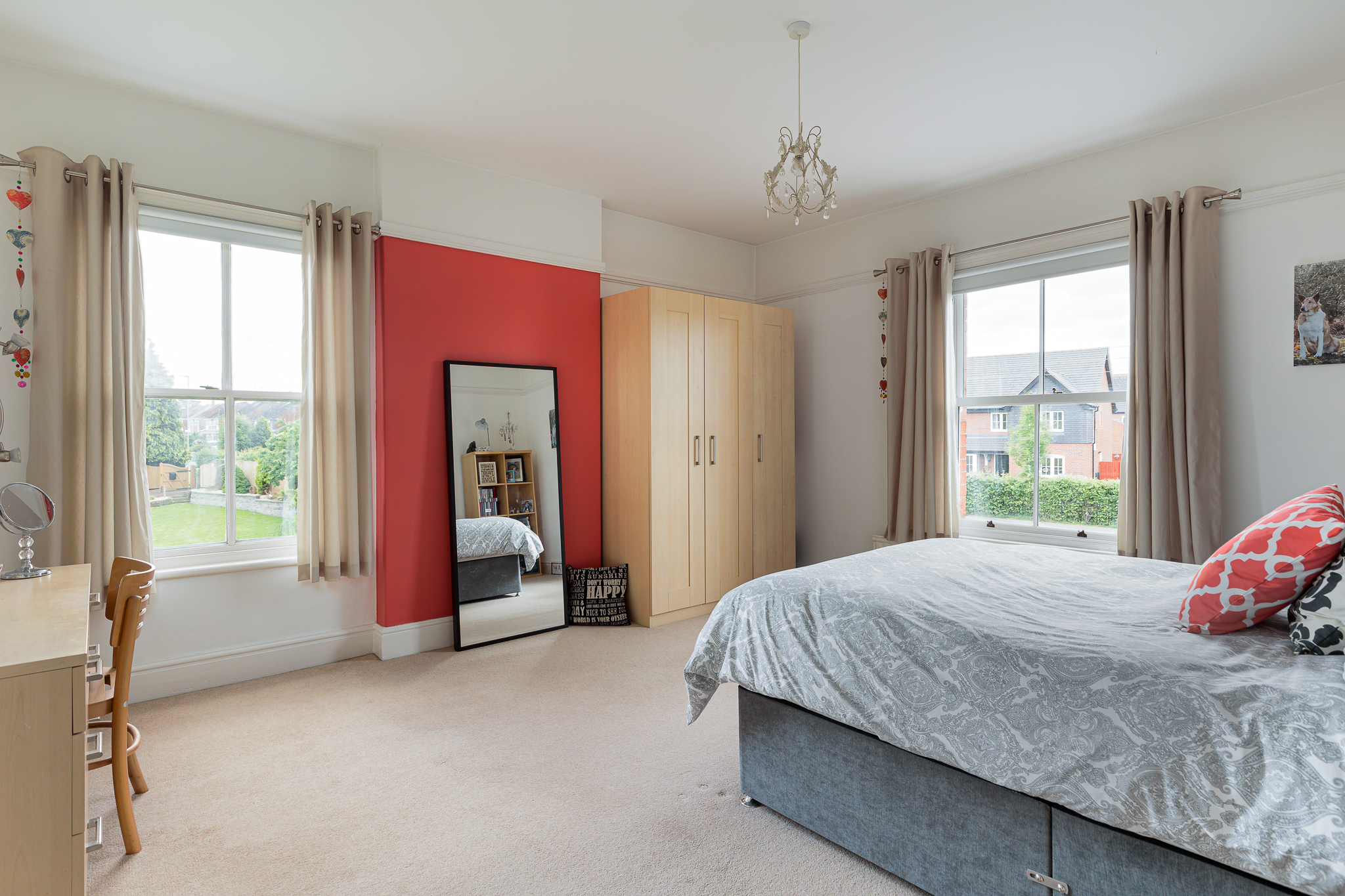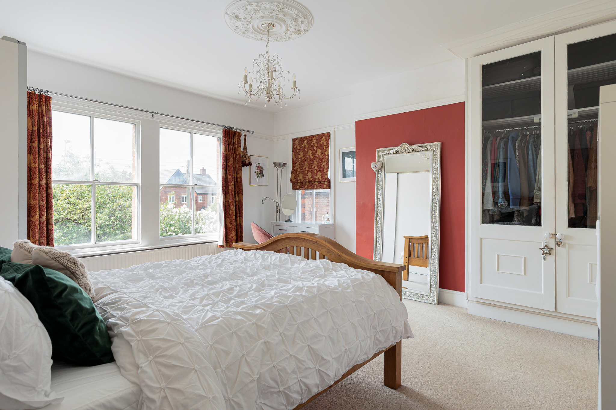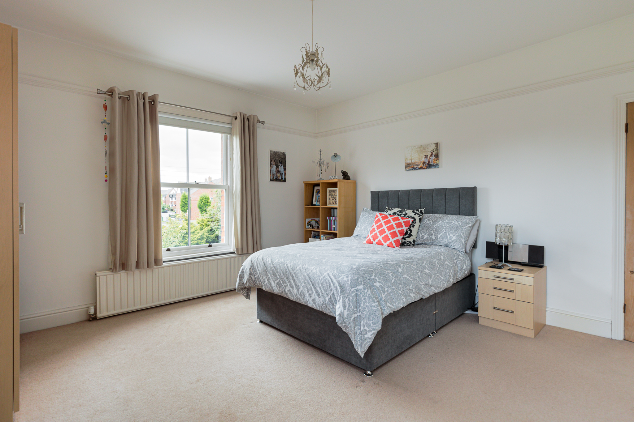 Built in double wardrobe, three double glazed sash windows, picture rail, ceiling rose.