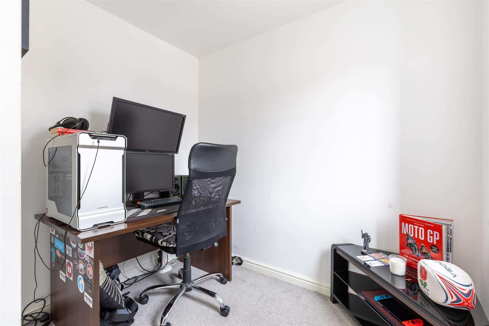 The property benefits from two allocated parking spaces to the side. To the front is a lawned area with hedge border and a flagged path to the front door.