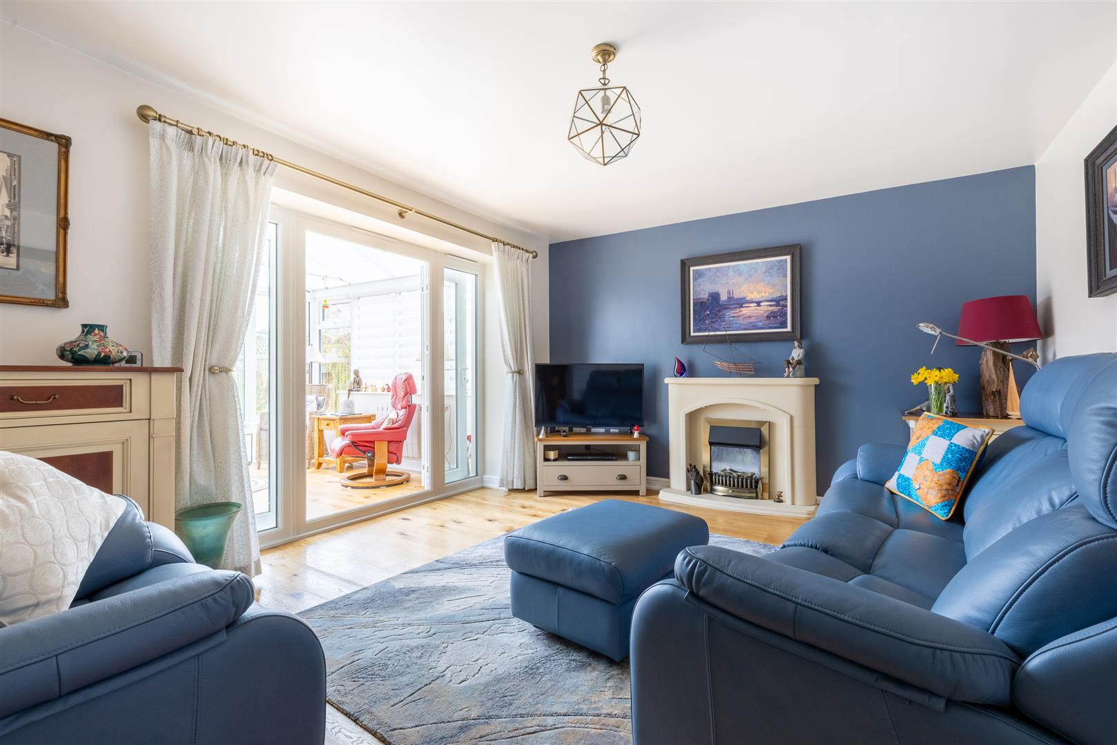 Dimensions: 4.80m x 3.71m (15'9" x 12'2"). A fine room with doors opening to the Garden Room. beautiful oak floor, radiator, TV point, Modern fire surround with inset electric fire. UPVC double glazed doors opening to the Garden Room.