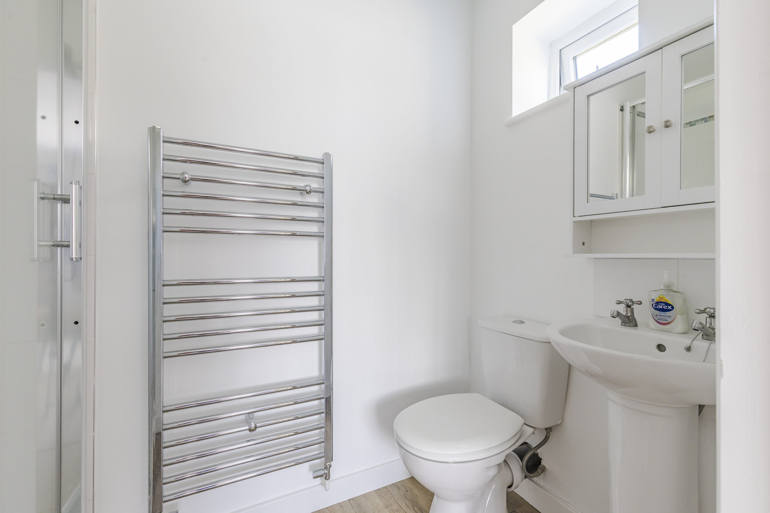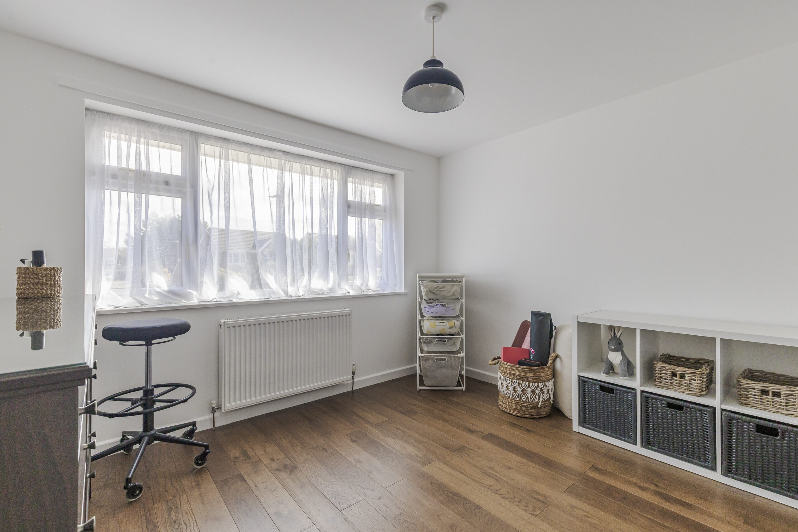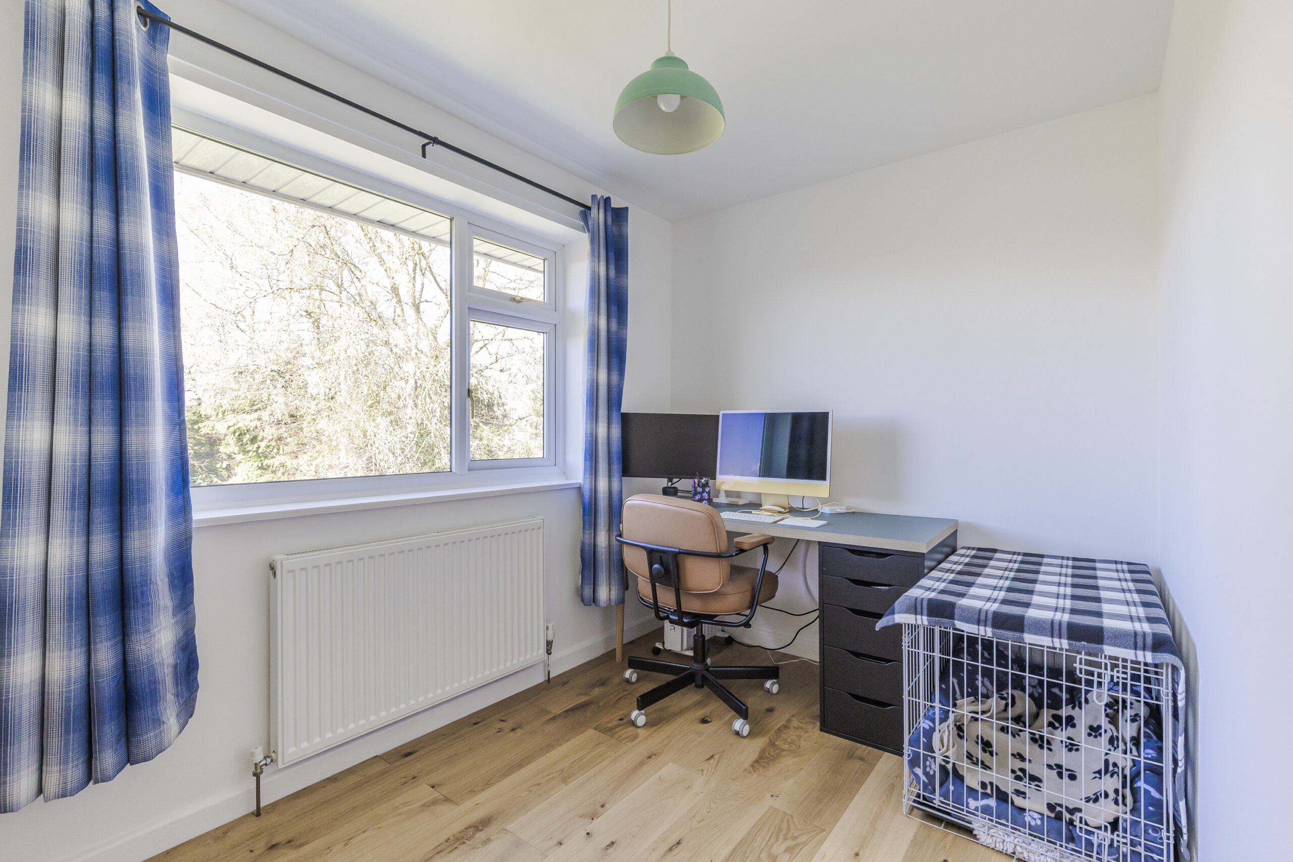 Upstairs, the property comprises four bedrooms including a principal bedroom with en-suite shower room. Two of the bedrooms are doubles with built-in wardrobes, along with a fourth single bedroom currently used as an office. There is also a family bathroom fitted with a bath, toilet, sink and heated towel rail.