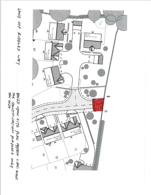 A small area residual area of land within the recently constructed Stewart Milne, Bayley Croft development in Willaston village, adjoining open farmland at the head of a cul de sac.