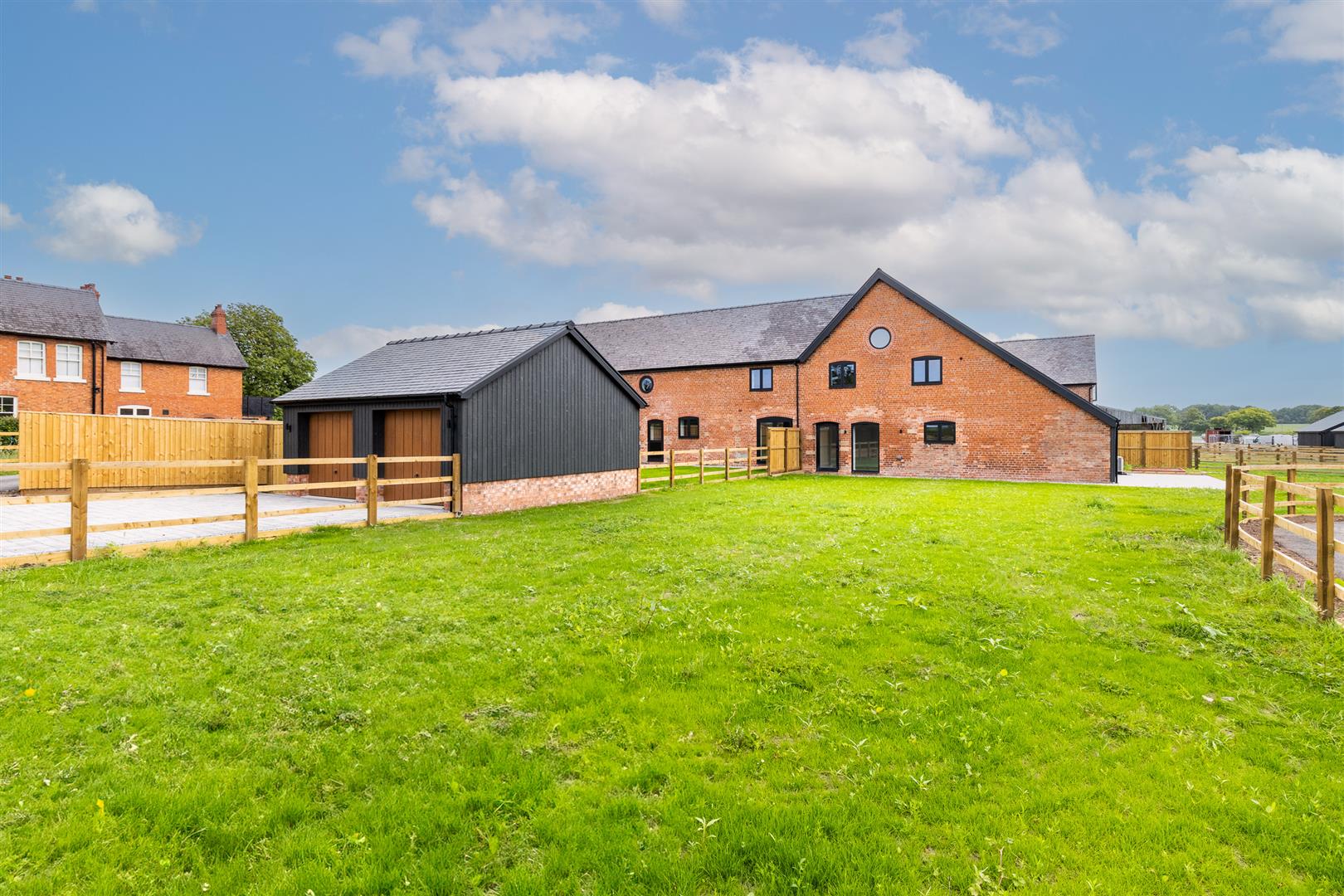 The specification of the barns includes, but is not limited to, the following: Air source heat pumps, Underfloor heating, Double garages with electric doors, Beautifully designed kitchens with Neff appliances, boiler taps and wine cooler, Lutron lighting in kitchen, diner, living area, Sonos integrated ceiling speakers to kitchen, diner, living area, Fiber broadband direct to each property, 10 years structural warranty, Electric charging points for cars, Electric gates.