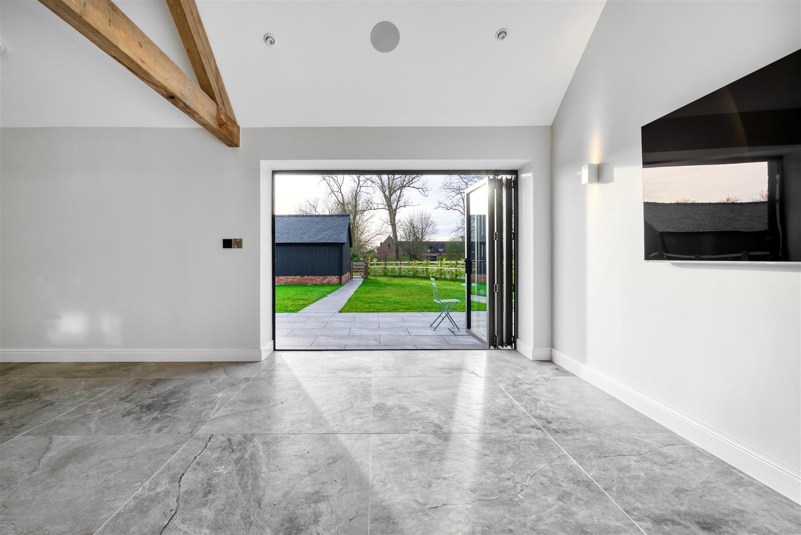The specification of the barns includes, but is not limited to, the following: Air source heat pumps, Underfloor heating, Double garages with electric doors, Beautifully designed kitchens with Neff appliances, boiler taps and wine cooler, Lutron lighting in kitchen, diner, living area, Sonos integrated ceiling speakers to kitchen, diner, living area, Fiber broadband direct to each property, 10 years structural warranty, Electric charging points for cars, Electric gates.