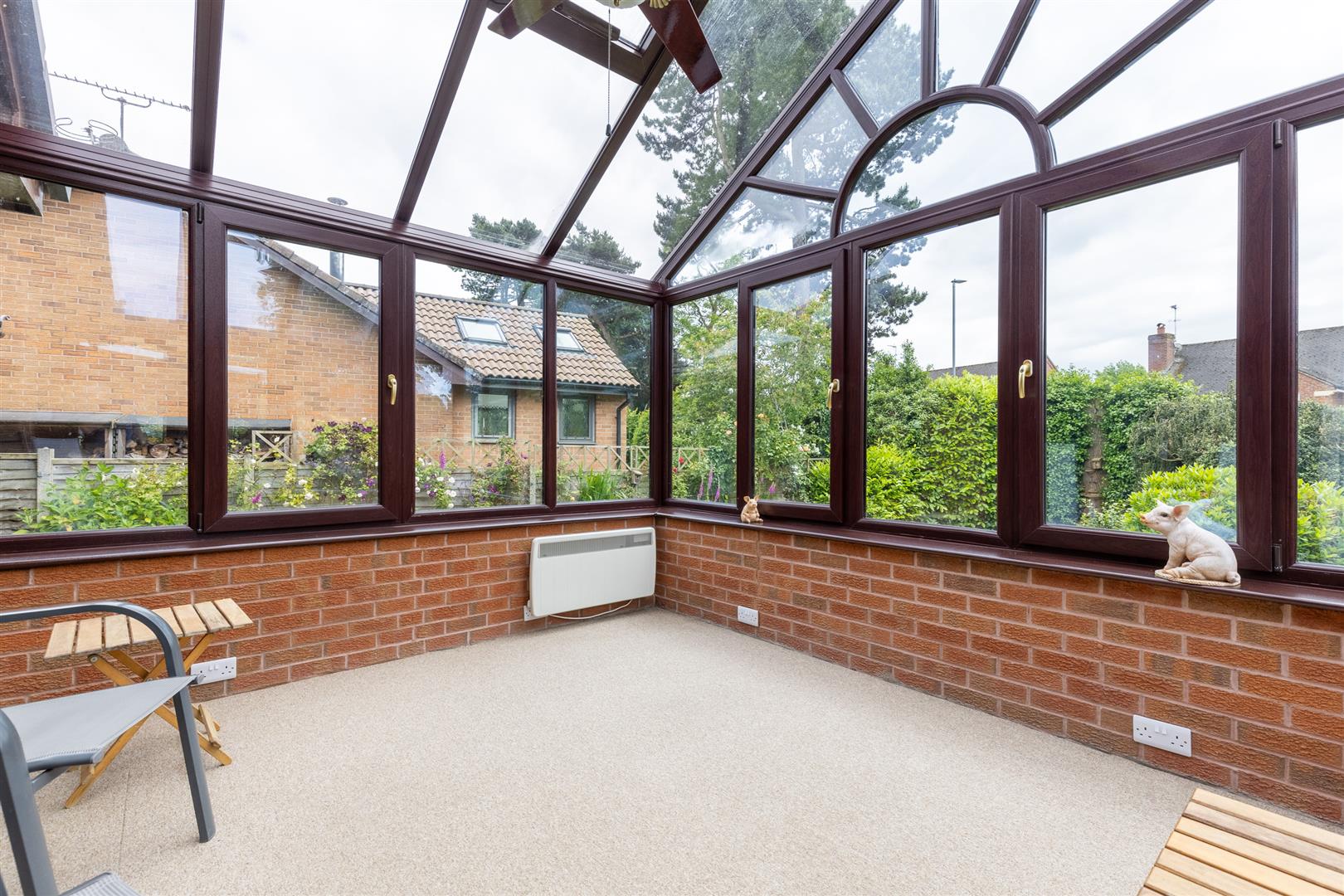 Dimensions: 3.48m x 3.25m (11'5 x 10'8"). Large dwarf wall conservatory offering double glazed glass roof with remote electric opening roof windows, uPVC double glazed side windows, electric panel heat, uPVC double glazed French doors to garden.