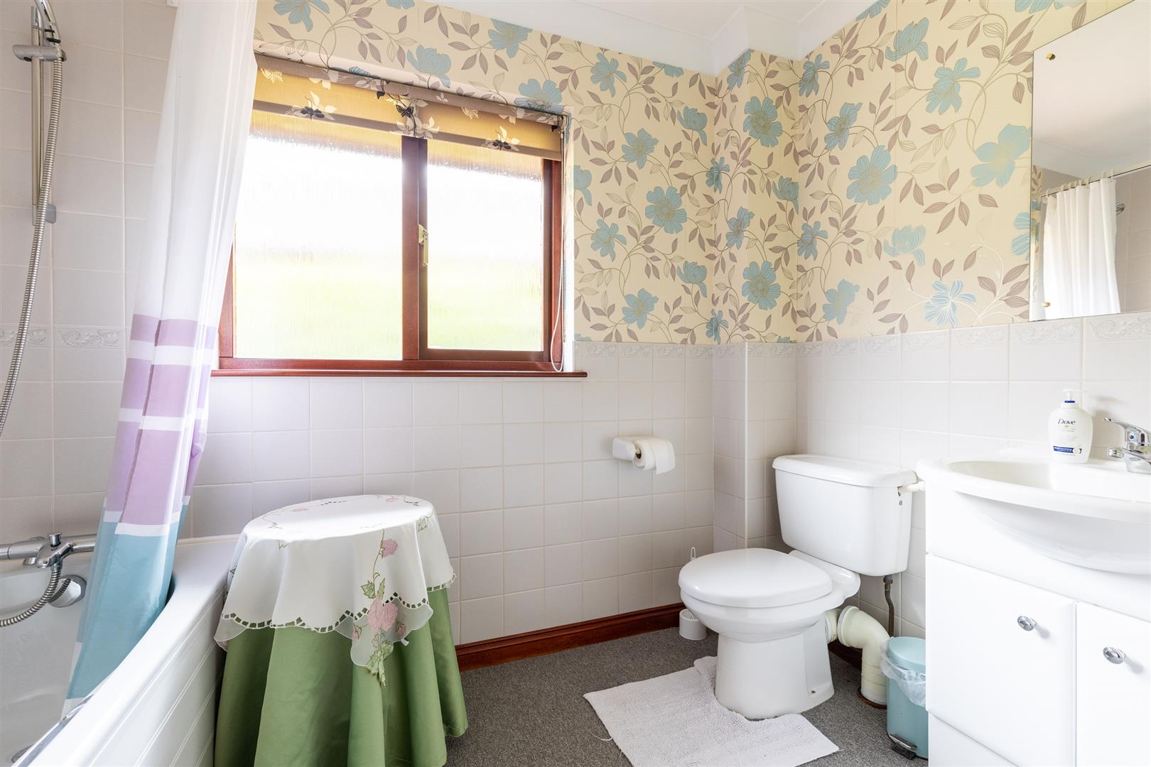 Dimensions: 2.69m x 1.57m (8'10" x 5'2"). Comprising of panel bath with shower tap, wash hand basin with monobloc mixer tap over vanity unit, low level W/C, double glazed window, radiator