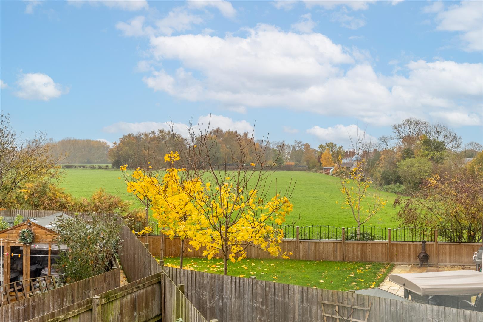 Dimensions: 5.28m x 2.64m (17'4" x 8'8"). Range of wall to wall fitted wardrobes with sliding mirrored doors, fitted cupboard/wardrobe, two double glazed windows enjoying views over the rear garden and countryside beyond, radiator.