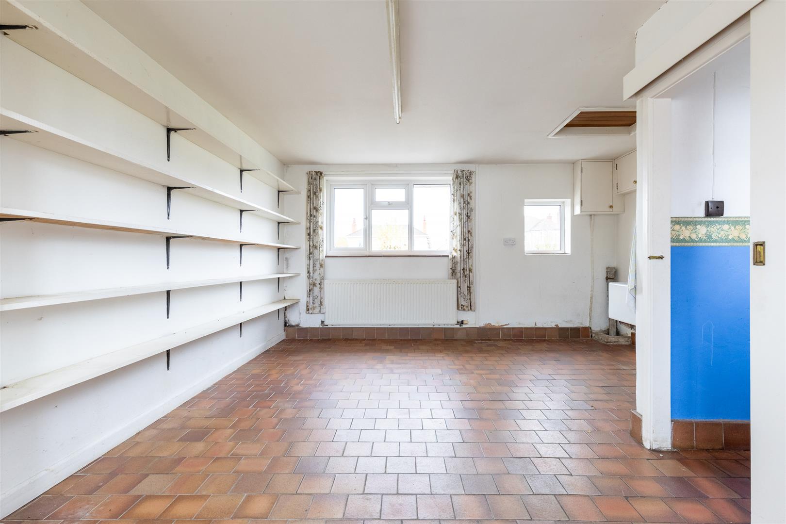 Dimensions: 5.33m x 4.42m maximum (17'6" x 14'6" maximum). Belfast sink, tiled floor, fitted shelving, three double glazed windows, hot and cold water, door to rear, Grant oil fired central heating boiler, radiator.