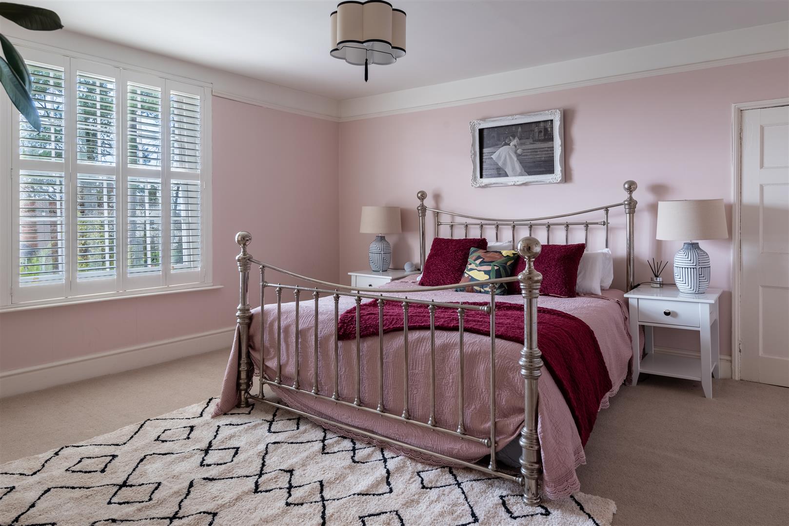 Dimensions: 4.47m x 4.47m (14'8" x 14'8"). Excellent range of built in wardrobes and dressing table, cast iron grate with painted carved timber surround, shelving, picture rail, period style radiator.