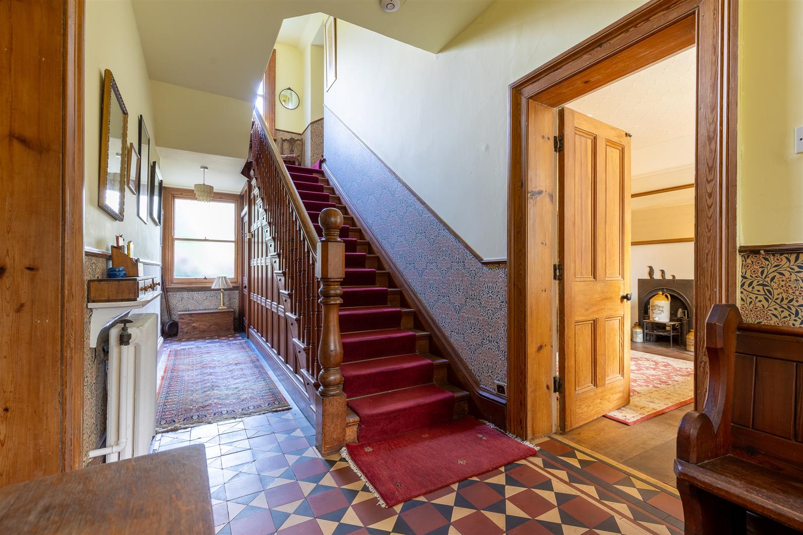 High ceilings. Impressive pitch pine easy rising staircase with half landings, deep skirting boards and architrave, cast column radiator, attractive tile floor.