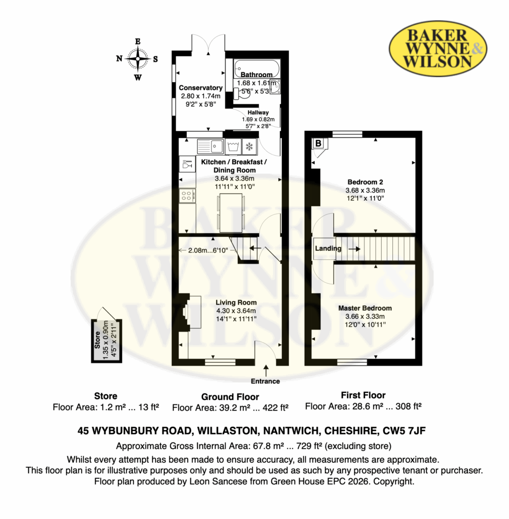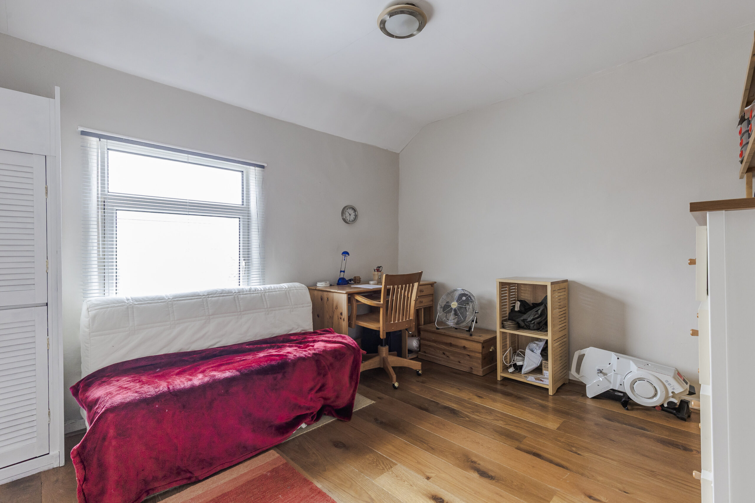 Upstairs, the property includes two double bedrooms, both featuring wooden flooring.