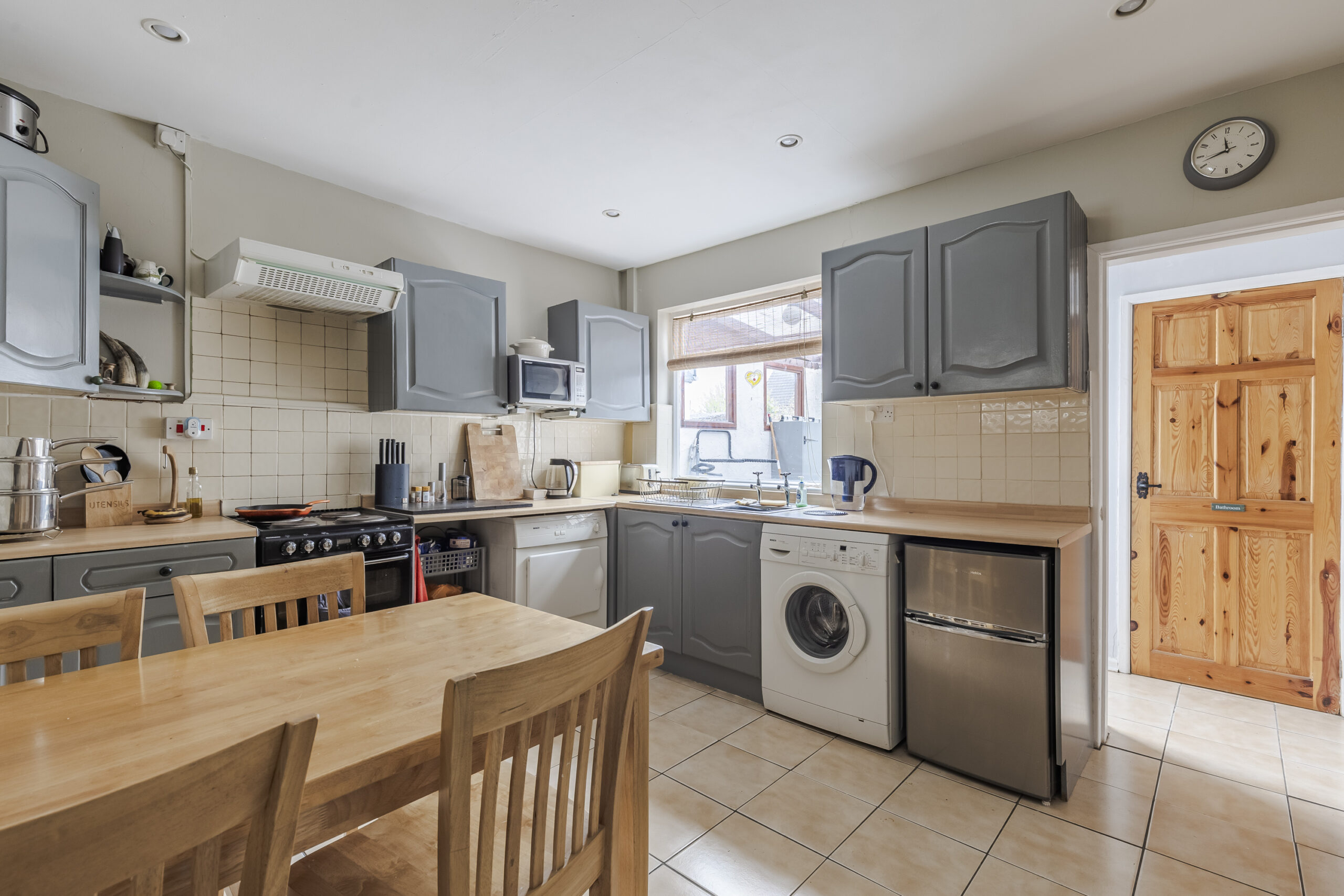 This two-bedroom mid-terrace property offers well-proportioned accommodation and is suited to a range of buyers. The ground floor includes a large living room with a gas fireplace, offering potential for conversion to a log burning stove. To the rear, there is a kitchen/dining room fitted with a range of above and below counter units, along with space and plumbing for appliances.